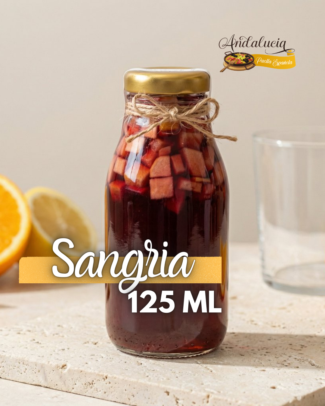 Acompaña tu deliciosa paella con una refrescante sangría de 125 ML, una combinación perfecta de vino, frutas frescas y un toque especial que realza cada bocado.